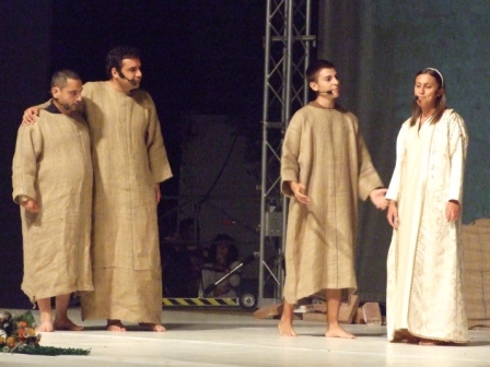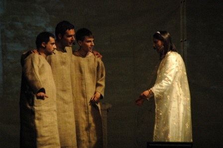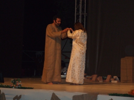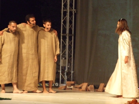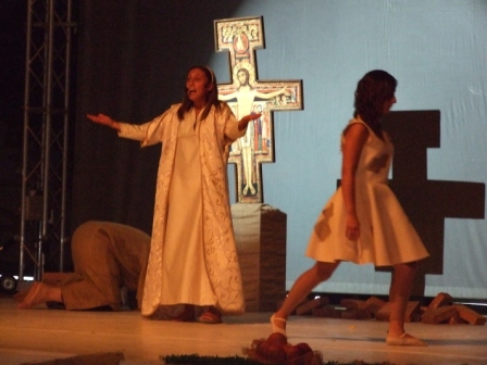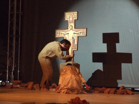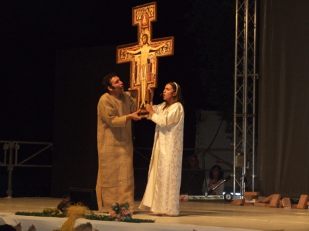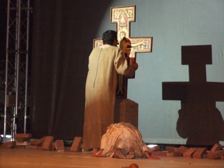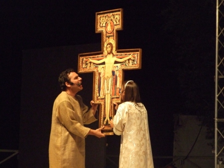 | Terza scena: Francesco con la sua vita contagia tanti fratelli che come lui desiderano vivere abbandonato all'amore di Dio, attendendo da Lui ogni provvidenza. |
